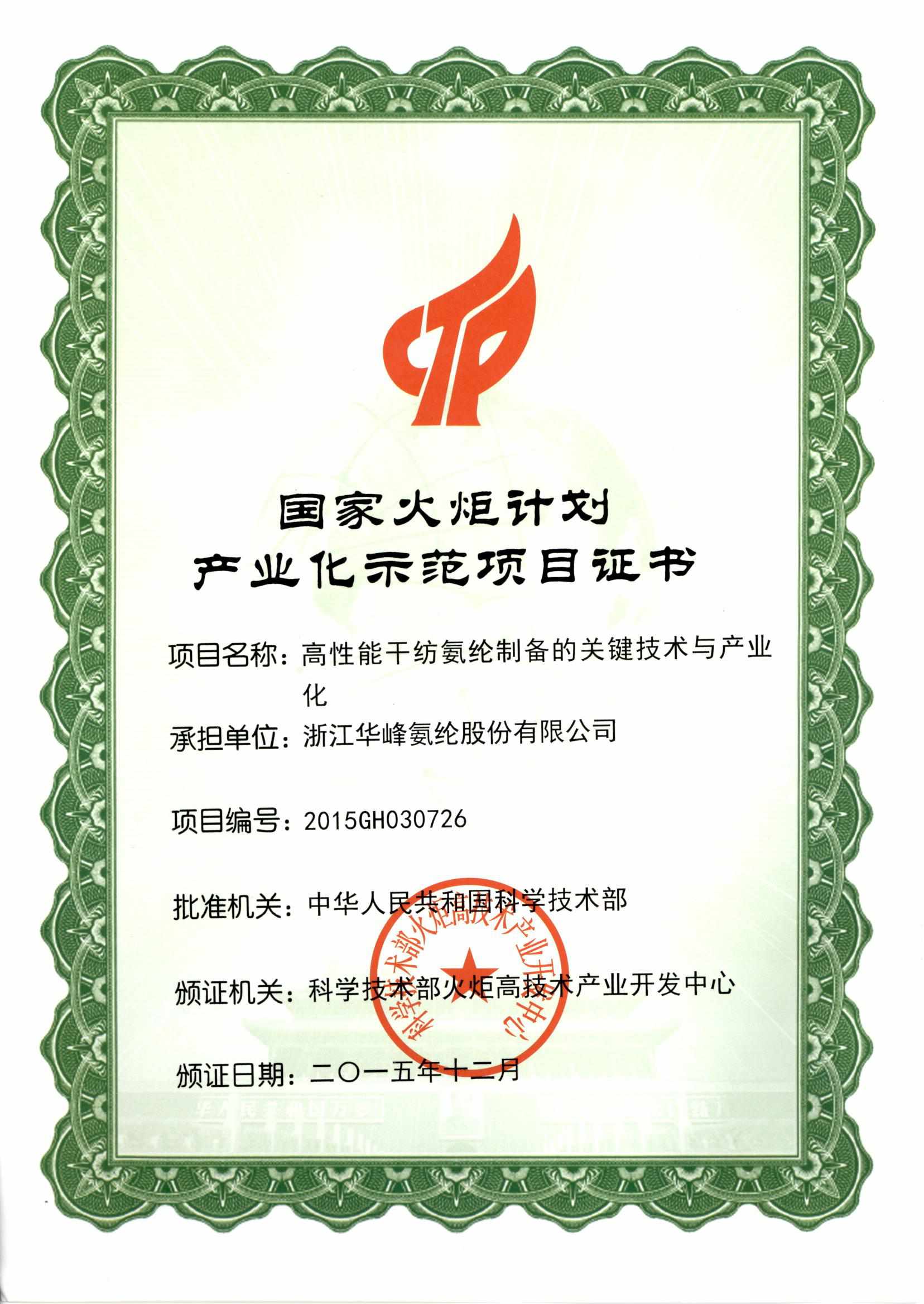 • 國(guó)家火炬計(jì)劃產(chǎn)業(yè)化示范項(xiàng)目證書(shū)