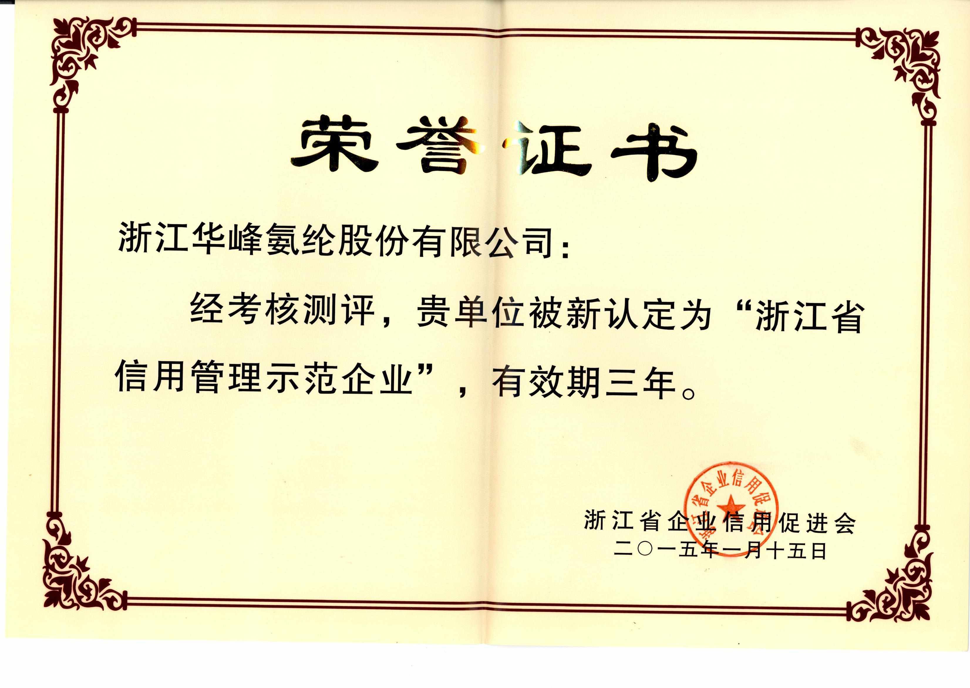 • 浙江省信用管理示范企業(yè)