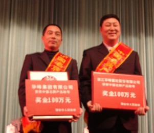 2005年,本公司“千禧”牌氨綸長絲和華峰集團公司“聚峰”牌聚氨酯樹脂(鞋底原液、革用樹脂)榮獲中國名牌產(chǎn)品,改寫了瑞安沒有中國名牌產(chǎn)品的歷史,也為瑞安其他企業(yè)提升產(chǎn)品質(zhì)量和品牌意識樹立了良好的榜樣,市政府為表彰華峰集團這一突破性成績,分別給予集團公司和氨綸公司各一百萬元的重獎。在2005年度瑞安市工業(yè)三十強企業(yè)排名中,華峰集團公司和氨綸公司名列前兩位。集團公司和氨綸公司同時還被評為“瑞安市五星級工業(yè)企業(yè)”、“瑞安市外貿(mào)進口5強企業(yè)”。
