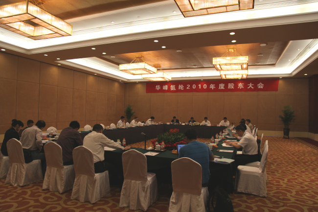5月17日上午,氨綸公司2010年度股東大會在瑞安錢塘陽光假日酒店召開。 16名股東及股東代理人出席會議,會議由氨綸公司董事長尤小平主持,公司部分董事、監(jiān)事和高管列席會議。