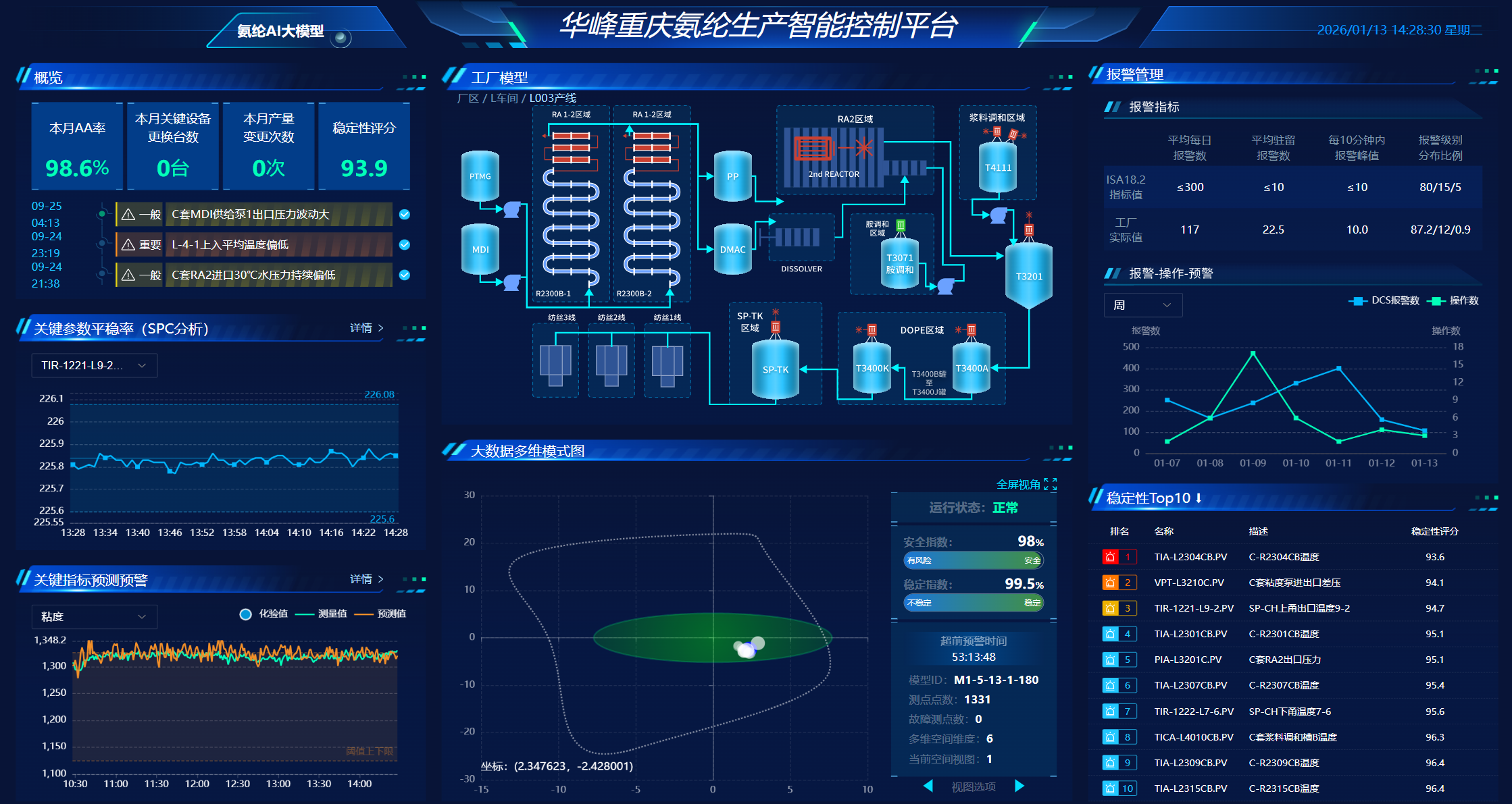 在管理端,華峰重慶氨綸會(huì)同母公司華峰化學(xué)股份有限公司搭建了統(tǒng)一的數(shù)據(jù)中臺(tái),構(gòu)建了高品質(zhì)氨綸數(shù)據(jù)互聯(lián)分析庫,打通了ERP、MES、LIMS等系統(tǒng),實(shí)現(xiàn)“一數(shù)一源、全域可視”。與此同時(shí),公司通過大數(shù)據(jù)分析,精準(zhǔn)預(yù)測(cè)市場(chǎng)需求與庫存動(dòng)態(tài),優(yōu)化排產(chǎn)計(jì)劃,大大縮短訂單交付周期。